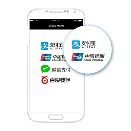 翼宝支付,为iOS/Android原生/H5 App提供支付解决方案:支持微信支付、支付宝支付、银联手机支付、百度钱包等。